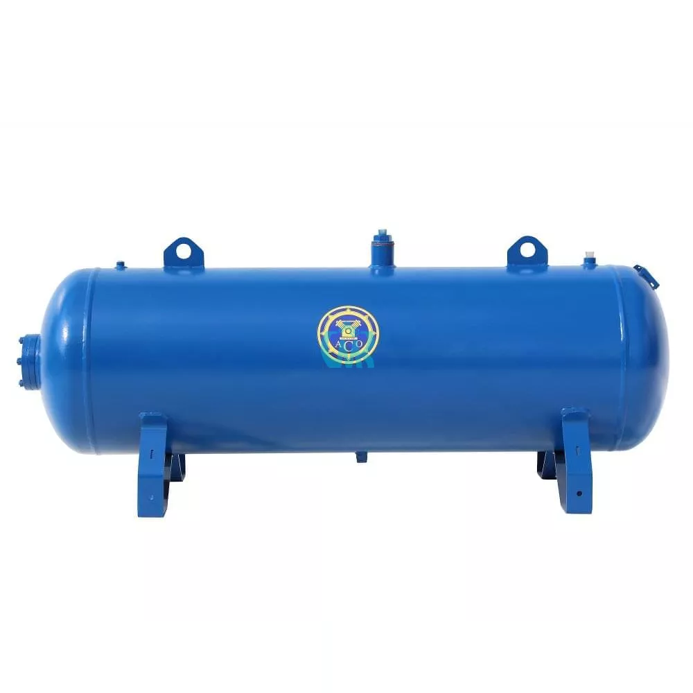 Горизонтальный воздушный ресивер РГ 230/16 Бежецкого завода АСО объемом 230 л рассчитан на эксплуатацию при максимальном рабочем давлении до 16 атм и температуре от + 5 до + 100 °C, изготовлен из стали Ст3пс с толщиной стенки обечайки 5 мм и толщиной днища 5 мм. Габариты 160 х 57 х 70 см, масса 111 кг. Расчетный срок службы устройства - 10 лет. Расчетное число циклов нагружения - 4,9 х 104.